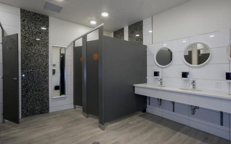 - Shared washrooms: two mixed-gender (gender neutral) facilities, each with 3 showers, 3 toilets, and 3 sinks.